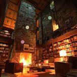 아늑한 성의 도서관에서 들리는 벽난로 소리