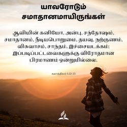02:50||Season 2024, Ep. 1Daily Devotion - Be at peace with everyone - 01-Jan-2024 - Galatians 5:22-23யாவரோடும் சமாதானமாயிருங்கள் Be at peace with everyone But the fruit of the Spirit is love, joy, peace, patience, kindness, goodness, faithfulness, 23 gentleness, self-control; against such things there is no law. Galatians 5:22-23 ஆவியின் கனியோ, அன்பு, சந்தோஷம், சமாதானம், நீடியபொறுமை, தயவு, நற்குணம், விசுவாசம், சாந்தம், இச்சையடக்கம்; இப்படிப்பட்டவைகளுக்கு விரோதமான பிரமாணம் ஒன்றுமில்லை. கலாத்தியர் 5:22-23 #dailydevotion #bible #bibleverseoftheday #bibledevotionfortheday #spiritualgifts #peace #love