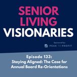 *Senior Living Visionaries* is a podcast that brings together innovative leaders and forward-thinkers in senior living to share insights, strategies, and inspiring stories that shape the future of the senior living industry. The show regularly features best practices in the boardroom to strengthen nonprofit governance, offering practical advice and bold ideas to empower professionals and organizations to thrive in a rapidly evolving landscape.