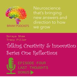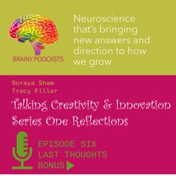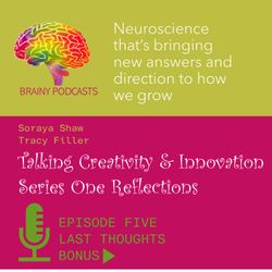 18:06||Season 2, Ep. 5Welcome to BRAINY PODCASTS the brainchild of Soraya Shaw & Tracy Filler. Soraya and Tracy are connected by their passion for understanding what makes people tick, or as Ruby Wax describes it what’s going on with our ‘mother ship’?So, what’s got them all hot under the collar enough to join the saturated podcast world? Well, quite simply the conversations they’ve been having with each other and those around them, they thought “if we find this fascinating, perhaps we are not alone and these discussions need to be heard”.This bonus series looks at each episode from Series One and captures our reflections post-interview; showcasing key messages and observations. We hope it entices you to listen to the episodes again or for the first time!Podcast Series One explores the wider context of creativity and innovation; What is it? Who has it? Why that matters and how it will impact our futures. We’ll be joined by inquisitive, creative minds from different walks of life to those who need convincing they fit this description at all.In this episode, we reflect on Episode Five from Series One, discussing what stifles our creativity. Whatever your understanding or view, these podcasts will help you navigate your own thoughts on the subject and give you enough fuel to light your imagination and take action, whatever you do in life.As a renowned Applied Neuroscientist, Soraya will be cementing your understanding with the latest scientific evidence of what’s happening in our brain when we come up with new ideas, new ways of working or solving a problem, and how to have more of them.