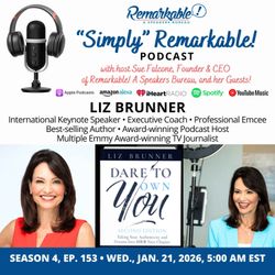 32:35||Season 4, Ep. 153Join us for our weekly Live Streaming Show, “Simply” Remarkable #livebroadcast, and her special guest, Liz Brunner, “Unlocking Your IT Factor: The Power of Intentional Transformation”!When Liz Brunner speaks, coaches, or takes the stage as emcee, audiences don’t just listen; they transform! Through one-on-one executive coaching and transformative corporate workshops, Liz empowers clients to become rock-star communicators. Her signature course, “How to Be a Rock Star Public Speaker,” on her Brunner Academy online learning platform carries the personal endorsement of legendary speaker Brian Tracy.Liz is the best-selling author of Dare to Own You: Taking Your Authenticity and Dreams Into Your Next Chapter. She has been featured in Forbes, CEOWorld Magazine, Boston Common Magazine, HR.com, and Thrive Global. Her long list of accolades includes multiple Emmy Awards, two National Gracie Awards, an Edward R. Murrow Award, and an Associated Press Award. Liz has served on the Make-A-Wish Massachusetts and Rhode Island Board of Directors and the Boston Chamber of Commerce Women’s Network Advisory Board.Liz’s client list includes Stifel, Barron’s Women Summit, Hewlett-Packard, Dell Technologies, Enterprise, CoreNet Global Summit, Deloitte LLP, Bentley University, Liberty Mutual Insurance, MA Association of REALTORS®, MIT Sloan School of Management, Morgan Stanley, NASDAQ, Nasuni, Procter & Gamble Co., SONY, Staples, Inc., YWCA Boston, Varian Medical Systems, Asian Real Estate Association of America, Accenture, Meritas Partners, and MGH Cancer Center.Liz’s Most Requested Keynote Experiences include:• “Unlocking Your IT Factor:” The Power of Intentional Transformation • No Knowledge Is Ever Wasted • Communicate, Connect, and EngageMOMENTS:3:35 - Origins story! What sparked the big shift into something more? Liz 4.0!8:30 - What’s the difference between someone who CONTROLS the message and someone who TRUSTS the message, and which one moves people?11:36 - What’s one skill that aligns your whole self and enhances your work. IT Factor! 17:58 - What’s the biggest communication mistake leaders make that’s costing them influence?23:38 - Your keynote experiences on your topics leave leaders and teams with tools for real transformational change.25:37 - One bold fun action people can take right now to spark their IT Factor.27:31 - Trust you know more than you think you know.Learn more about Liz and book her on our webpage: https://remarkablespeakersbureau.com/speaker/liz-brunner/Follow Liz’s author page on Amazon: https://www.amazon.com/stores/author/B09JPBQ163Liz’s 4 Cs: 1. Confidence; 2. Content; 3. Clarity of Content; 4. Conversational delivery.Contact Sue Falcone TODAY to book Liz: RemarkableSpeakersBureau.com | (888) 766-3155 | sue@remarkablespeakersbureau.comJoin our #livebroadcast every Friday at 10:00 a.m. EST! All episodes will be featured on our #podcast every Wednesday at 5:00 a.m. EST! Follow our show and catch the next episode!Subscribe to our LinkedIn newsletter: https://bit.ly/3HdIPtm*************************************FOLLOW US ON SOCIAL MEDIA:#LinkedIn - @SueFalcone#Facebook - @bookaspeaker#Instagram - @remarkablespeakersbureau#Twitter - @bookyourspeaker#YouTube - @RemarkableSpeakersBureau (Smash the bell!)#LizBrunner #CommunicationMatters #LeadershipMindset #ITFactor #daretoownyou #TransformationJourney #keynotespeakers #remarkablespeakersbureau #meetingplanners #meetingsandevents #virtualspeakersbureau #applepodcasts #experienceofalifetime #LetsBeREMARKABLEtogether