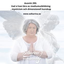 01:15:46||Season 11, Ep. 295Jag har en gång i månaden en andlig afton där jag kostnadsfritt bjuder in till samtal om paranormala upplevelser och dimensionell kunskap som jag lär ut när jag utbildar medium och i mysticism.Finns även att se på youtube.Frågor och svar på en andlig afton som jag håller kostnadsfritt.Kalender https://solkarina.se/kalender/ .Hemsida https://solkarina.se.Följ mig på Instagram: http://www.instagram.com/solkarina.se.Swisha donation till 123 007 90 61 Sinnligkunskap.http://www.medireiki.sehttp://www.sannessens.se Digitala kursgården med ReikiplattformenFacebook: http://www.facebook.com/Sinnligkunskap