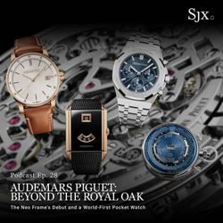 22:56||Ep. 28Recorded shortly after Brandon's return from Audemars Piguet's launch event in Switzerland, Episode 28 of the SJX Podcast provides analysis of all the brand's new releases, including the Neo Frame Jumping Hour, the 150 Heritage grand complication pocket watch, the upgraded Royal Oak Chronograph and its new in-house movement, and the latest open-worked perpetual calendar, which works equally well in Code 11.59 and Royal Oak guise.The conversation also touches on the internal reorganisation at AP that saw the creation of a multi-disciplinary fabrication laboratory dubbed the 'Fab Lab.' Show notes:00:30: Neo Frame Jumping Hour6:15: 150 Heritage pocket watch12:45: Royal Oak Chronograph 38 mm18:25: Royal Oak and Code 11.59 Perpetual Calendar21:05: AP’s Fab Lab