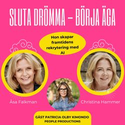 39:09||Season 2, Ep. 2I det här avsnittet möter vi Patricia Olby Kimondo, en entreprenör som bygger framtidens rekryteringsföretag med hjälp av AI – och som samtidigt är en av Sveriges tydligaste röster för att fler kvinnor ska starta, äga och leda bolag.Hon står bakom initiativet Double Up Impact och har prisats med Founders Alliance “Founder of the Year – Honorary Award 2024”. Hon sitter också i Tillväxtverkets styrelse och har haft styrelseuppdrag i UN Women Sverige.