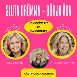40:08||Season 2, Ep. 3I det här avsnittet gästas vi av Monika Hedberg – entreprenör, investerare och grundare av Monika Hedberg Invest, medgrundare till Asynjor Invest och känd för att ha utbildat 500+ kvinnor till investerare. Monika berättar om sin resa från vården till att bygga flera verksamheter, sälja och hamna i ett oväntat tomrum – och hur det ledde henne in i investeringar och innovation.Vi pratar om:hur hon tänker när hon väljer bolag (människan bakom, produkt, energi och förståelse)varför personliga möten slår kalla DM:shur entreprenörer kan skapa “varma” kontakter och hålla investerare uppdateradevarför kvinnor får så lite riskkapital – och varför fler kvinnor (och män) behövs i investeringsrummenkonkreta tips till kvinnliga grundare: nätverka där investerarna är, bygg relation över tid, tänk i poster/tidslinje och undersök mjuka pengar (Vinnova/EU m.fl.) innan du ger bort ägandeEtt avsnitt fullt av energi, ärlighet och handfasta råd för dig som vill resa kapital – eller börja investera.