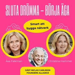 30:16||Season 1, Ep. 8I det här avsnittet pratar vi om våra erfarenheter av olika nätverk. Vilka har varit bra? Vilka har varit mindre bra. Vi delar med oss av våra bästa tips. Efter det möter vi Niclas Carlsson, grundare av Founders Alliance, som delar med sig av sina erfarenheter av att bygga ett av Sveriges mest inflytelserika entreprenörsnätverk. Vi pratar om varför nätverk är avgörande för entreprenörer, hur samarbeten kan skapa tillväxt och vilka tips du kan ta med dig för att själv bli bättre på att nätverka. Och att nätverka handlar inte bara om att få - det handlar minst lika mycket om att ge.