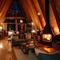 Un paysage sonore intérieur et protégé où le rugissement régulier du feu contraste avec le mauvais temps au loin.