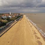 The southern end of the beach has a lifeboat station and a lifeboat museum, behind which is a small caravan park. At the northern end of the beach are a number of beach huts and it is backed by a promenade.