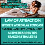 04:11||Season 4, Ep. 13Welcome students to your second semester of back to school activities at Spoken Wordplay Podcast. I am your chosen head instructor Ms. Tonya Michelle Wilkerson, speaking from the heart with a motivational message. The month of Febuary is known for the observance of National Black History Month. Students, so insupport of your mental, social, emotional and academic support, I am calling for all educational leaders to help increase literacy rates for underrepresented students that's struggling to read and write. Starting Febuary 14th students will listen and repeat positive I Am Affirmations with relaxing meditation music from Season 3 full podcast shows called " Reading Skills" and "Technical Writing Strategies" at Spoken Wordplay Podcast.Educational Partners here are several ways to focus on empowerment of National Black Literacy Day on Febuary 14th:Increase students engagement by inviting your students to participate in National African American Read-in Events to encourage reading books with black main characters that's written by black authors at ncte.org/get-involved/african-american-read-in/ Buy books from black-owned bookstores.Contribute books or resources to a local literacy focused organization like National Council of Teachers of EnglishStudents, I would like to share with you 2 out of 5 positive I Am Affirmations to say to oneself in the mirror from Season 4 new podcast episode 13 called " Procrastination Affirmations & Meditation" to help shift students mindset away from fear of failure and anxiety. These positive affirmations will help motivate students to start and finish task with self- confidence. If you like to gain early access to Season 1 through 4 full podcast episodes, subscriber only-bonus and Ad-free episodes then go to Apple Podcast and subscribe to Spoken Wordplay Podcast " Daily I Am Affirmations" Diamond VIP Plan to get a free 7-days trial and then $2.99 per month or get the best deal of $14.99 a year. Students, don't forget to click the subscribe button on my YouTube Channel at YouTube.com/@spokenwordplaypodcast to share, like and post comments. I thank you students and educational partners for your monthly support.