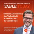 In seiner kurzen Amtszeit als Verteidigungsminister hat Karl-Theodor zu Guttenberg eine Entscheidung getroffen, mit deren Konsequenzen sich die Bundeswehr und sein Amtsnachfolger heute herumschlagen müssen: die Aussetzung der Wehrpflicht. Wie der Ex-Politiker heute darüber denkt und warum „KT Guttenberg“ eine Berufsbezeichnung ist, erzählt er im Gespräch mit Helene Bubrowski.