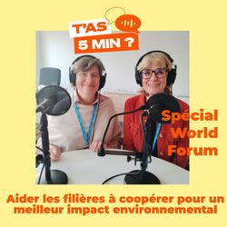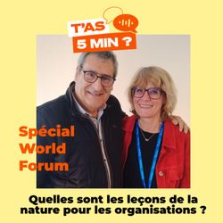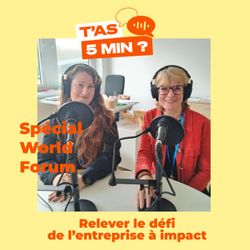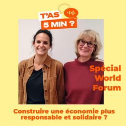 05:36||Saison 1Nous avons réalisé 6 interviews pendant le World Forum for a Responsible Economy !Le world forum est un événement annuel qui rassemble dirigeants d'entreprises, décideurs, acteurs publics et citoyens près de Lille depuis plus de 15 ans pour discuter de la transition vers une économie plus durable.Avec Maud Sarda (Label Emmaüs), nous avons parlé de la radicalité comme levier pour émerger, face aux géants de l'ultra fast-fashion. Et de faire des ponts entre les mondes de l'associatif et de l'entreprise pour s'inspirer et avancer.Avec Gilles Boeuf (Biologiste, Professeur émérite à La Sorbonne), nous avons évoqué la nécessaire reconnexion avec le vivant et comment les entreprises peuvent s'inspirer des principes de coopération, d'interdépendance et d'harmonie de la nature pour gagner en robustesse. Mais aussi de l'importance de parler aux jeunes et de former les influenceurs. Avec Alexandre Fayeulle (Président Fondateur d'Advens), nous avons exploré la vulnérabilité. En découvrant son cancer incurable, Alexandre a appris à faire de sa vulnérabilité une force et un atout pour le dirigeant, le management et la transformation de l'entreprise.Avec Sandrine Delory (Vice Présidente, Réseau Alliance), nous avons parlé de nos agriculteurs et de l'importance du territoire.Avec Laetitia Portal (Entrepreneuse, fondatrice Hello ArtUp), nous avons découvert comment l'Art et la Culture pouvaient trouver une place dans les Ehpad. Mais aussi de sa motivation à créer une entreprise à impact et passer le pas pour entreprendre après 45 ans et 20 ans de salariat.Avec Laure Lagier (Responsable RSE de API Restauration), nous avons parlé de déploiement de la RSE dans une entreprise à mission avec une stratégie innovante pensée de façon décentralisée pour impacter les sites sur toute la France.Les épisodes arrivent très vite ;)Animation : Valérie DoussinaultDirection éditoriale : Aurélie LeleuNous suivre sur Linkedin T'as 5 Min