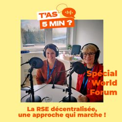 14:40||Saison 1, Ep. 18"On peut se passer de téléphones et de voitures, mais pas de manger. Il faut assurer notre souveraineté."En accompagnant le monde agricole, Sandrine Delory misait sur la RSE pour prendre soin de nos assiettes. Elle a rapidement compris que pour réussir, il fallait prendre le problème différemment dans un milieu où toutes les filières sont interdépendantes à l’échelle du territoire, sans toujours se connaître et communiquer. C’est ainsi qu’elle a lancé le collectif “Régénéré” qui fait désormais dialoguer 120 acteurs du territoire, pour transitionner vers une agriculture plus durable et décarboner l’assiette collectivement.Dans cet épisode de T’as 5 minutes, on parle de : . Passer de la RSE à la RTE (Responsabilité Territoriale des Entreprises) . Éviter de submerger les agriculteurs avec des référentiels multiples. Collaboration concrète entre industriels, agriculteurs et laboratoires. Bonnes pratiques pour naviguer entre contraintes juridiques, formation, mixité et diversité. Reconnaissance et valorisation du métier d’agriculteur, pivot de nos territoires et de nos assiettes.🌱 Actrice engagée pour le territoire : Sandrine Delory🎙️ Dirigeante engagée : Valérie Doussinault 📍Enregistrement au World Forum 2025📻 Vous avez 15 minutes ?Bonne écoute