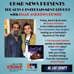 43:14|The CHMR News Arts & Entertainment Report for Friday, April 4 at noon! It's a great way to kick off your weekend - with host Isaac Andrews Power and special guest Duane Andrews !! PLUS #ChimdumebiDamian catches up with Citadel House artist #ANIL AND #GlennPardy is here with your Friday NL Live Events listings!! This program aired on CHMR MUN Radio at 12 noon on Friday, April 4, 2025.