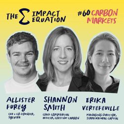 37:53||Season 1, Ep. 60Carbon markets tend to trigger strong reactions. For some, they’re a vital bridge - a way to fund climate action at scale while the harder work of reducing emissions catches up. For others, they feel like a distraction, or worse, a way of outsourcing responsibility. So rather than arguing for or against them, we wanted to ask a different question: What would it take for carbon markets to actually work - with credibility and scale? In our latest Impact Equation roundtable, we brought together three people working on different parts of the system: Alastair is focused on data and transparency, Shannon is building projects on the ground, and Erika is making the sector investable for serious capital.