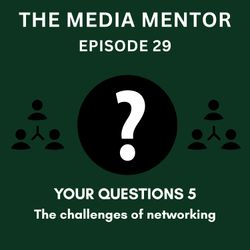 27:54||Season 1, Ep. 29This week I answer questions from Eliska Janska and Antonia Johlen, who are studying journalism at the University of Westminster. Their questions focus on the challenges of making contacts and how networking is hard. How do you introduce yourself at industry events and what do you say? Why is networking so important? If that is something you struggle with, then listen for advice on how to manage those situations and maximise the conversations you have.One to one advice is available via my mentoring sessions that are confidential and offer practical tips and guidance on advancing your media career. Find out more here.Also on the website are 6 pages of media jobs to browse. There is also a WhatsApp channel for job alerts as I find the listings.If you have any questions about media careers or a story that you would like to share then please get in touch.