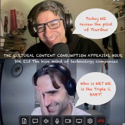 01:06:18||Season 6, Ep. 15PLURIBUS SEASON 1 EPISODE 1: Reviewed!Well, we still haven’t sold our souls to hit monkeys! And our Patreon era beckons. But for now … it’s Christmas time! Can you believe it’s back already!? I for one certainly cannot. And yet here we are. And on your podcast advent-calendar, there are barely any left episodes left until your favourite time of the year: a Christmas special and a Fomo awards. Yay! It’s beginning to look a lot like podcast Christmas! Enjoy all these episodes that are free and not paywalled while it’s still Season 6 and #REVIEW1THING and you can! Today we get into all of it. It’s another banner day for results and fans of WHO ACTUALLY WON THE EPISODE so stay tuned until the very end, even if you find all the pre-finding-out-the-result chat absolute nonsense and irrelevant. Vince Gilligan has returned to television. Much like Mozart once returned to music and Shakespeare once returned to the theatre. If the internet (and Christopher!) are to be believed! He is back with a show about … well … something. I’m sure our in-episode synopsising while suffice! Completely unassisted by AI. That’s right folks. This show was made by humans. Watch the Pluribus pilot here: https://tv.apple.com/gb/show/pluribus/umc.cmc.37axgovs2yozlyh3c2cmwzlzaTweet of the week (Bob is begging for a live special in 2026 and I am here to oblige tbh): https://x.com/bobdylan/status/1989034016033628651Oh no! Pluribus does in fact have its own podcast!! WELP!!! I guess I will not actually be enjoying the rest of this show hahahahahahaha: https://podcasts.apple.com/us/podcast/pluribus-the-official-podcast/id1846198705The good people of Reddit who are interested in screenwriting were talking about the pilot here: https://www.reddit.com/r/Screenwriting/comments/1ous7ze/what_makes_the_pluribus_pilot_so_special/This is the character Carol from Pluribus doing her own (kayfabe!) Reddit AMA. Amazing concept and very fun execution, if you’re up for really diving in: https://www.reddit.com/r/tvPlus/comments/1p1lnf4/im_carol_sturka_author_of_bloodsong_of_wycaro_ask/Check out our website: cccappraisalhour.showCheck out our e-mail: cccappraisalhour@gmail.comCheck out our Twitter: twitter.com/cccappraisalpodCheck out our YouTube: https://www.youtube.com/@cccappraisalhourCheck out our Instagram: https://www.instagram.com/cccahourSpecial FAVE MOMENT FROM THE POD RECORD note for VIP read-the-whole-show-notes-members only: When we had a proper in-depth discussion regarding the future of the 30 second game. Reminiscent of our K POP DEMON HUNTERS episode when we spent the first half of the episode basically doing a pre-production podcast meeting *on* the podcast. In this case at least we definitively got somewhere … eventually! *winking emoji* SPOILERS BELOW FOR NEXT WEEK’S #REVIEW1THING CONTENT: https://www.youtube.com/watch?v=TvXhCayQXkc&t=3992s
