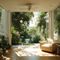 It’s peak summer. Outside, the sun hangs high and still, but inside your shaded garden room, calm prevails. A ceiling fan turns slowly overhead, its gentle rhythm blending with the sound of birdsong wafting through wide open patio doors. The garden hums with life, but you're cool, settled, and surrounded by comfort. Perfect for relaxed focus, restful naps, or simply letting the day drift by.