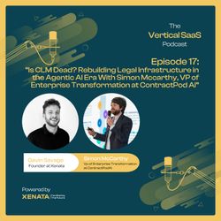 52:45||Season 1, Ep. 17On this episode of The Vertical SaaS Podcast, host Gavin Savage sits down with Simon McCarthy, VP of Enterprise Transformation at ContractPod AI, to unpack what’s broken in Contract Lifecycle Management and what’s coming next.With over 150 CLM implementations under his belt, Simon shares a brutally honest take on why most platforms fail, the myths around CLM as a “legal” tool, and how AI is reshaping the contract stack. From post-signature ROI to the rise of agentic contracting, he offers sharp insights into where legal tech is headed and how operators can actually get it right.We explore:Why half of CLM projects fail and how to avoid becoming a cautionary taleThe true cost of doing nothing in contract managementWhat makes vertical SaaS fragile in the era of AIWhether “intelligent contracting” is just rebranding or something deeperThe line between tools and platforms, and how AI could redraw itWhether you’re scaling a legaltech product or rethinking your enterprise contract stack, this one’s packed with hard truths, practical wisdom, and a hopeful look forward.Key Takeaways:Simon has led 150+ CLM rollouts across major enterprisesChange management, not tech, is the CLM killerCLM is a cross-functional platform, not just for legalBad implementations can cost millions in sunk valueAI + agentic tools are transforming the CLM stackReal value lies after the signature, in tracking, obligations, and outcomesAdoption hinges on integration and user behavior, not featuresThe future is modular, intelligent, and AI-native