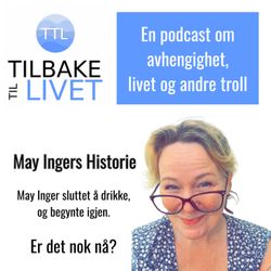 52:12||Season 1, Ep. 2May Inger forteller åpent og ærlig om sitt turbulente forhold til glasset,Hun har som så mange andre prøvd å slutte før og endte med store fall. Vi er heldige! Vi skal få følge henne mer enn i bare denne eposiden, nå på en reise inn i edruskapet for andre gang i Tilbake Til Livet. Er det nok nå?