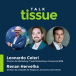 No Talk Tissue de hoje, Felipe Quintino conversa com Leonardo Celeri, diretor de Marketing, Trade Marketing e Comercial B2B da Viveo, e Renan Hervelha, diretor da Unidade de Negócios Consumo/Cremer.