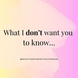 'What I Don't Want You to Know,' is all about connecting on a deeper level, coughing up vulnerable, hidden experiences about our lives (and those of our guests to come). We are all about sharing stories in a safe way, in a safe place, with safe people, as a means to understanding ourselves and each other.