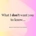 What I don't want you to know