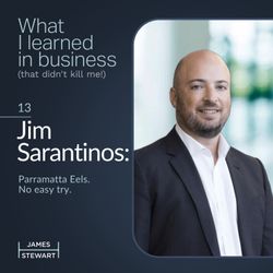 49:15||Season 1, Ep. 13In this episode of What I Learned in Business (That Didn’t Kill Me!), James H Stewart sits down with Jim Sarantinos, CEO of the Parramatta Eels, one of the most passionately supported and closely scrutinised rugby league clubs in Australian sport.Before taking the reins at the Eels, Jim spent two decades at Ferrier Hodgson, helping navigate some of Australia’s most complex restructures — including Rick Damelian Group, Dick Smith Electronics, Topshop Australia, and Steinhoff Australia during its global financial challenges.But perhaps his most defining challenge came in 2016, when the Eels faced one of the biggest governance crises in NRL history — board sackings, salary cap breaches, and a club community in turmoil. Working alongside Ferrier Hodgson legend Max Donnelly, Jim helped rebuild trust, governance and transparency — lessons that continue to shape the club today.His story is also deeply personal. In his early thirties, Jim was diagnosed with non-Hodgkin’s lymphoma. Surviving that experience reshaped his outlook on life, leadership and what truly matters — lessons that echo across every part of this conversation.From crisis management to culture, and from chemotherapy to comeback, this is a conversation about resilience, accountability and the power of second chances — in business and in life.HighlightsWhat corporate turnarounds can teach sporting organisations about leadership and accountabilityInside the Eels’ 2016 governance crisis and the rebuild of its foundationsHow surviving cancer changed Jim’s leadership perspectiveThe continuing challenge of turning potential into performance at a professional sporting clubConnectFor more episodes, visit jameshstewart.com Connect on LinkedIn: James H Stewart GAICD Follow the show on Apple Podcasts, Spotify or wherever you listen.DisclaimerThis podcast is for educational and general discussion purposes only. The views expressed by guests are their own and do not represent the views of any organisation, past or present. Nothing discussed should be taken as financial, legal or professional advice. Listeners should seek their own professional guidance before acting on any information contained in this episode.